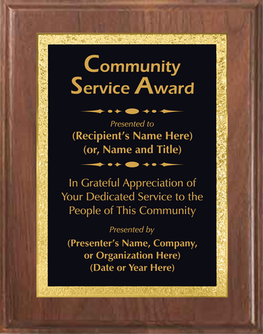 Walnut Wood Plaque with Decorative Plate - Community Service Award