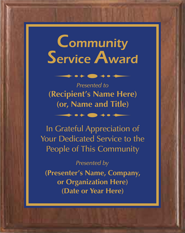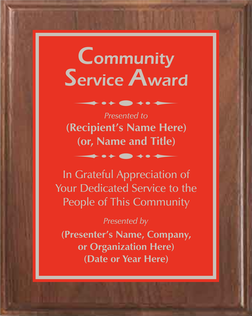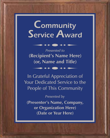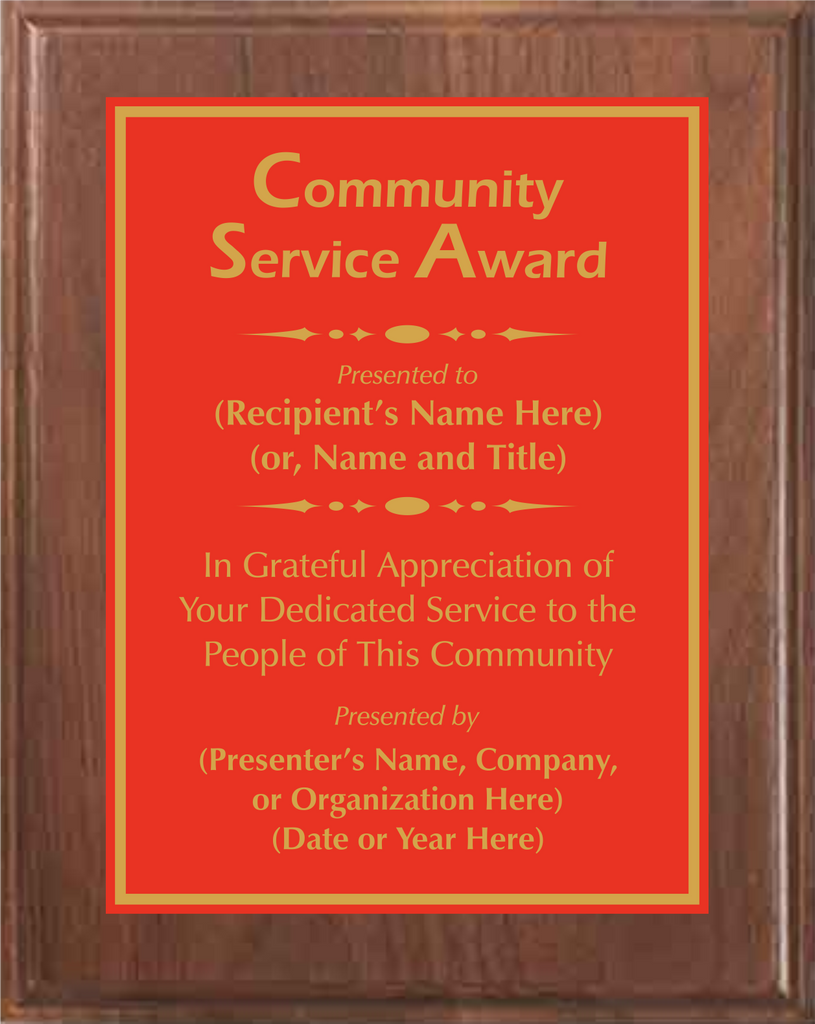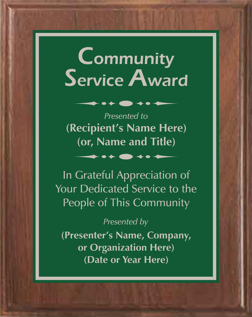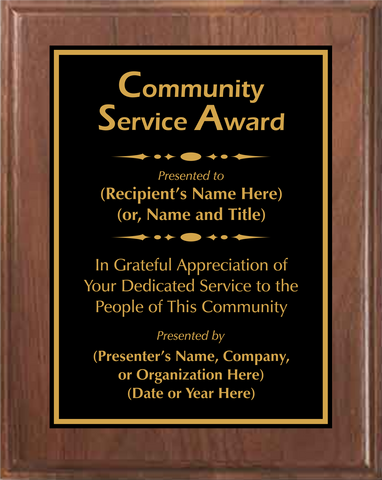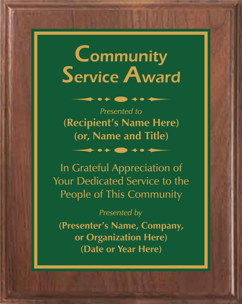 Walnut Wood Plaque with Standard Plate - Community Service Award