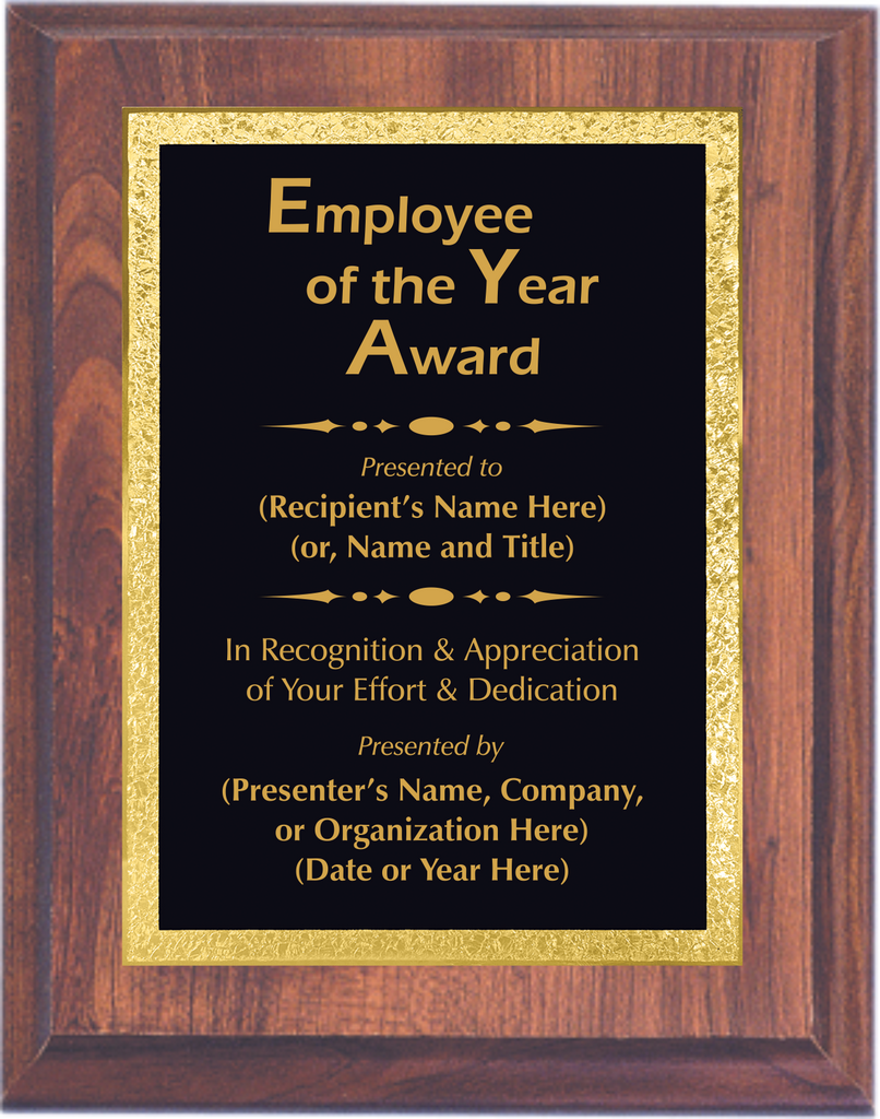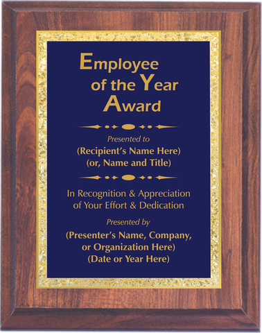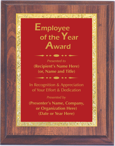 Cherry Woodgrain Plaque with Decorative Plate - Employee of the Year Award