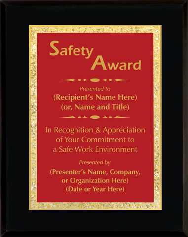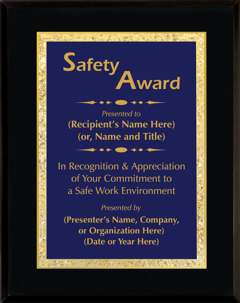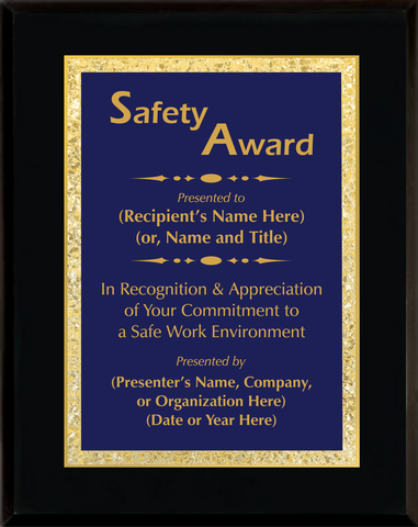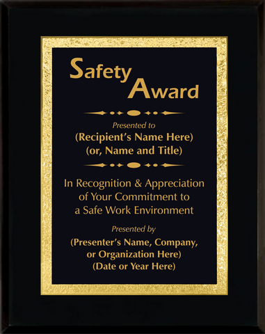 Gloss Black Wood Plaque with Decorative Plate - Safety Award