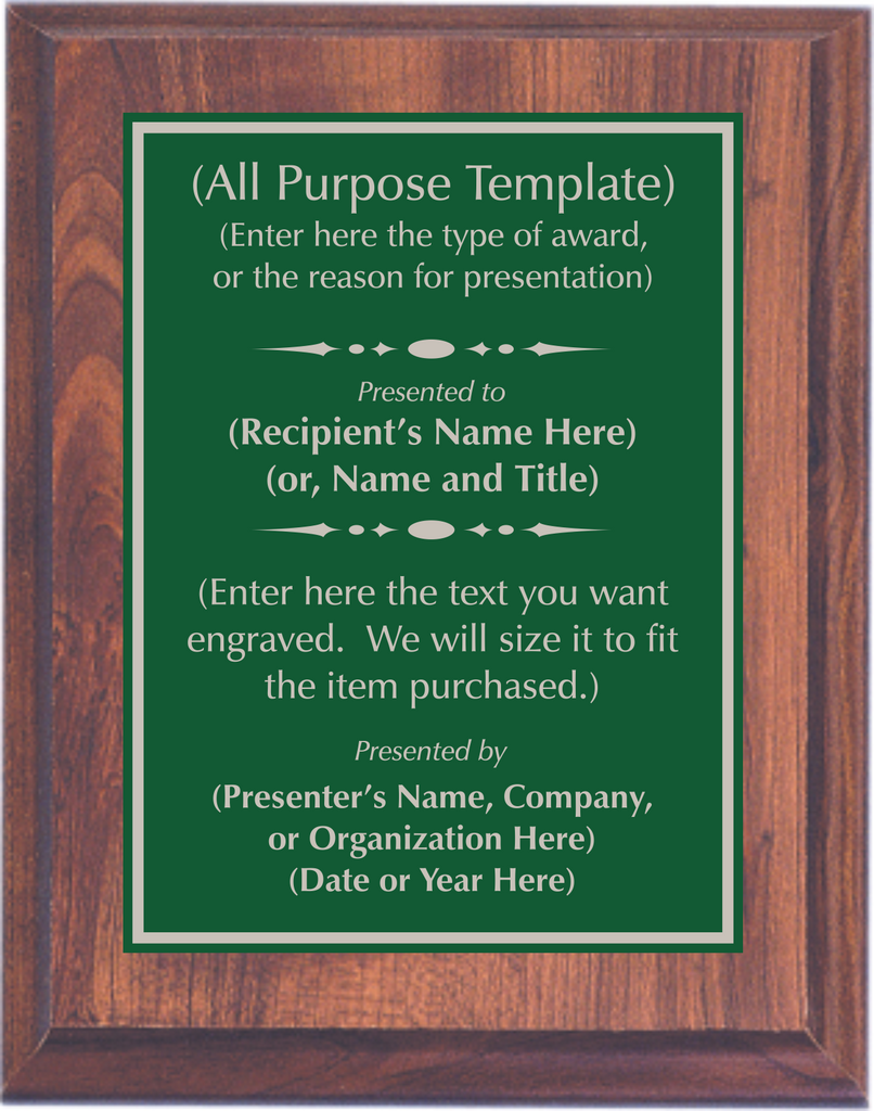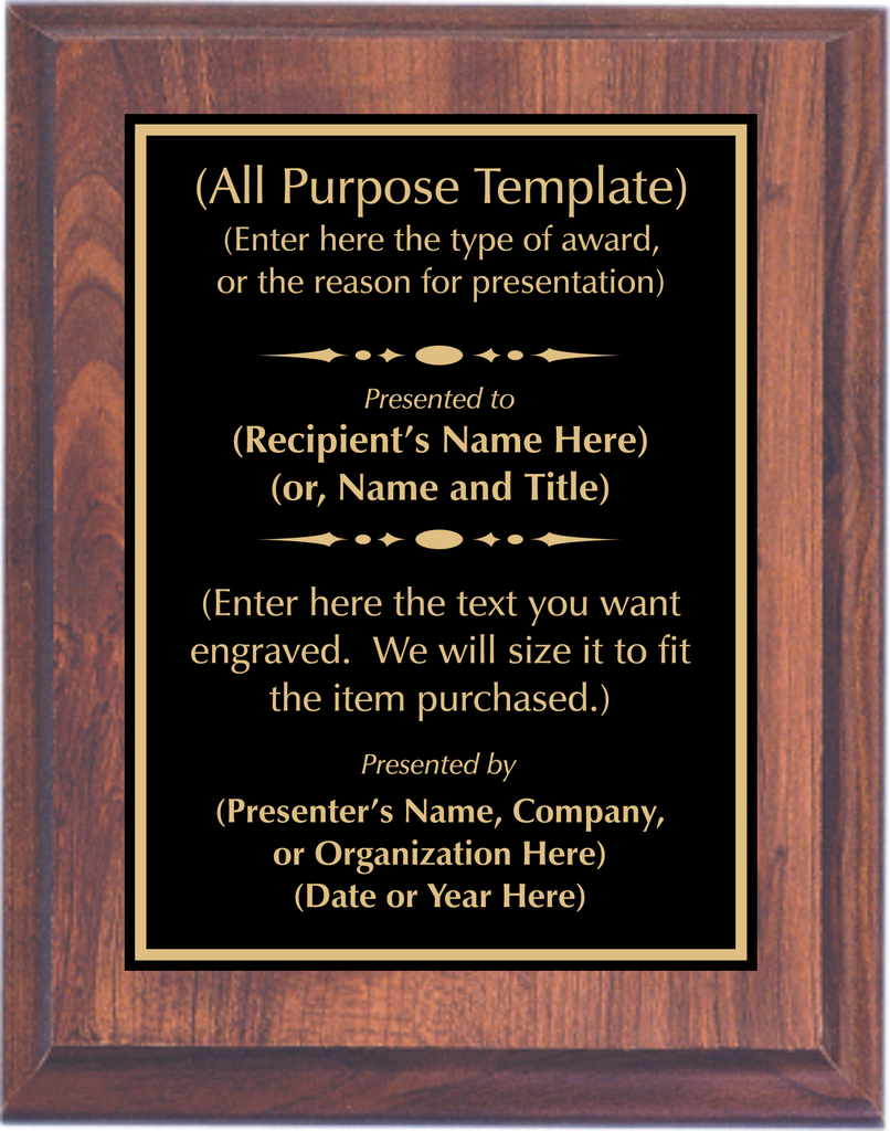 Fiberboard Cherry Woodgrain Finish Plaque with Standard Metal Plate.