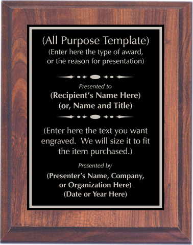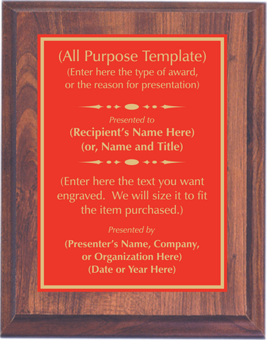 Cherry Woodgrain Plaque with Standard Plate - Design Your Own Award