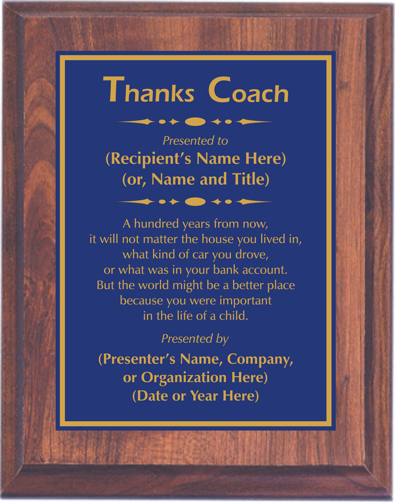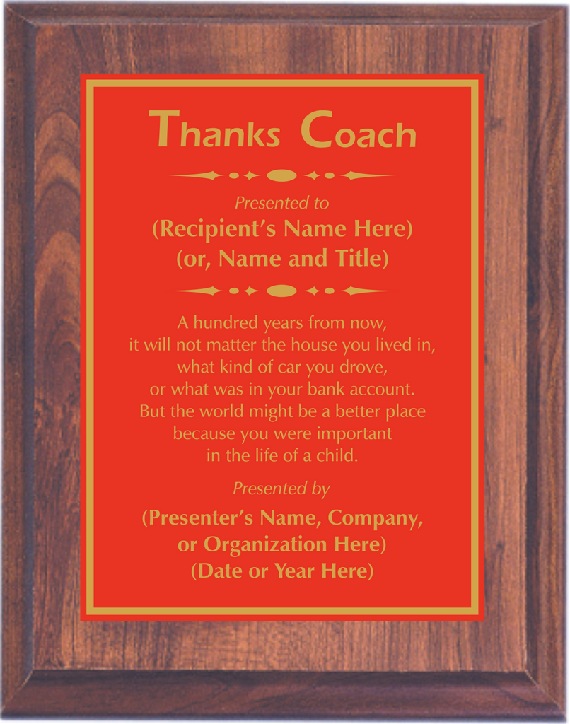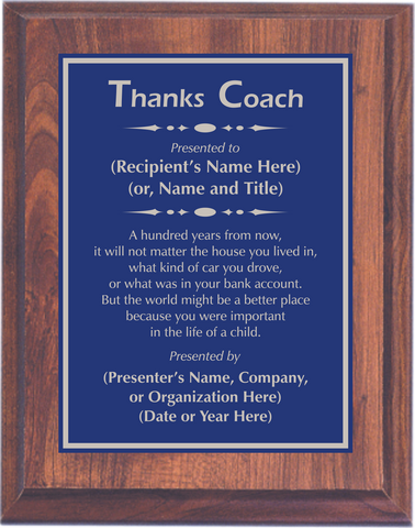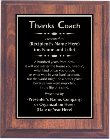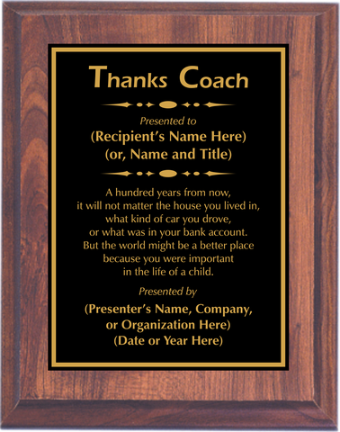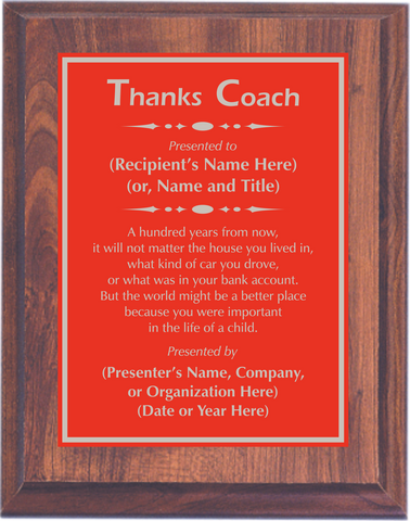 Cherry Woodgrain Plaque with Standard Plate - Coach Appreciation Award