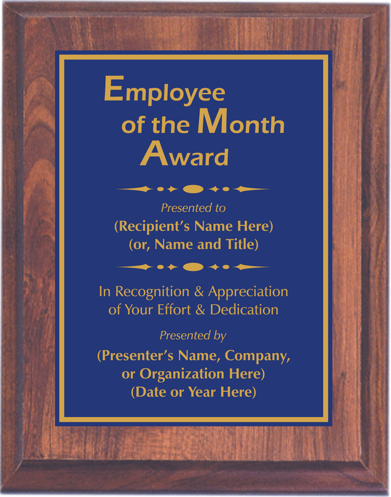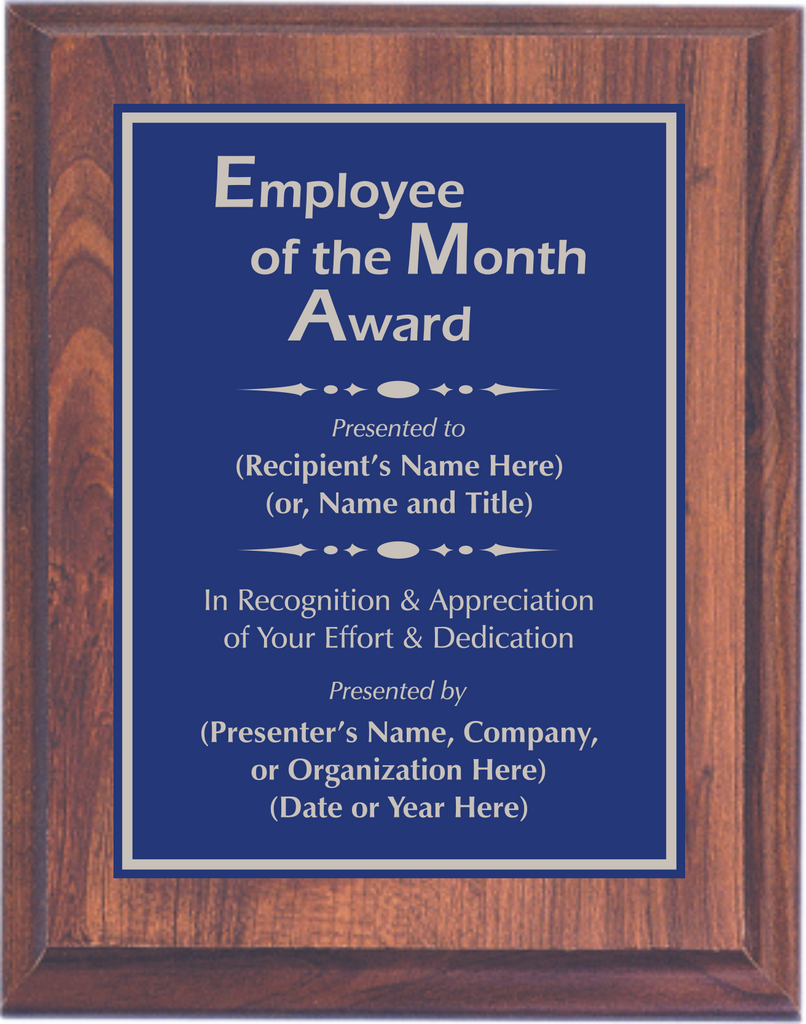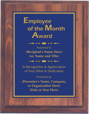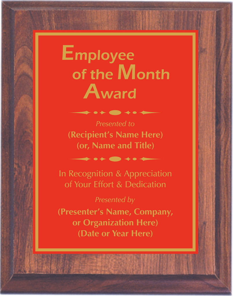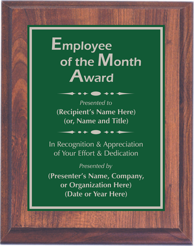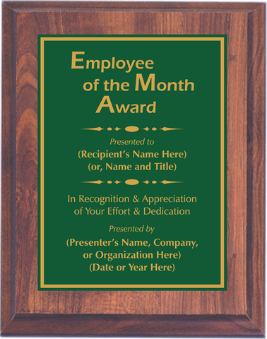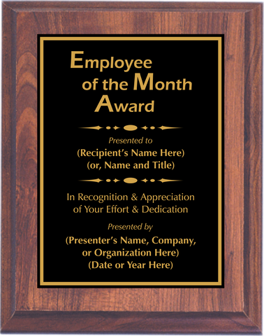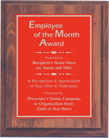Cherry Woodgrain Plaque with Standard Plate - Employee of the Month Award