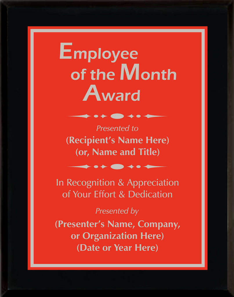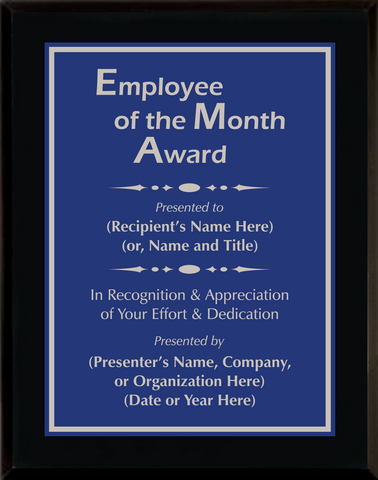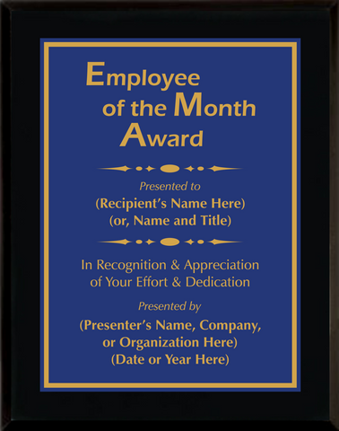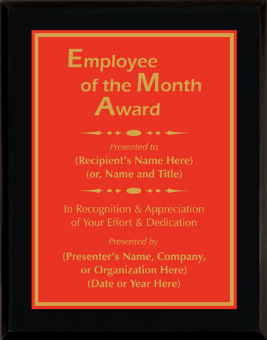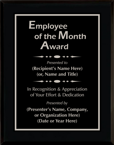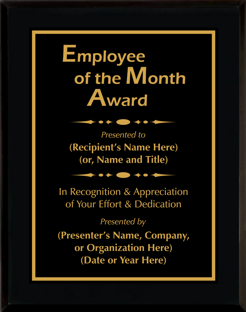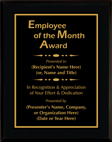 Gloss Black Wood Plaque with Standard Plate - Employee of the Month Award