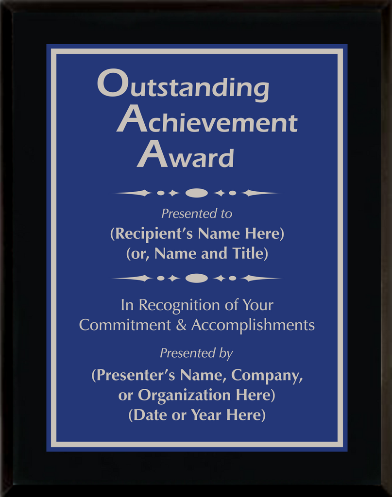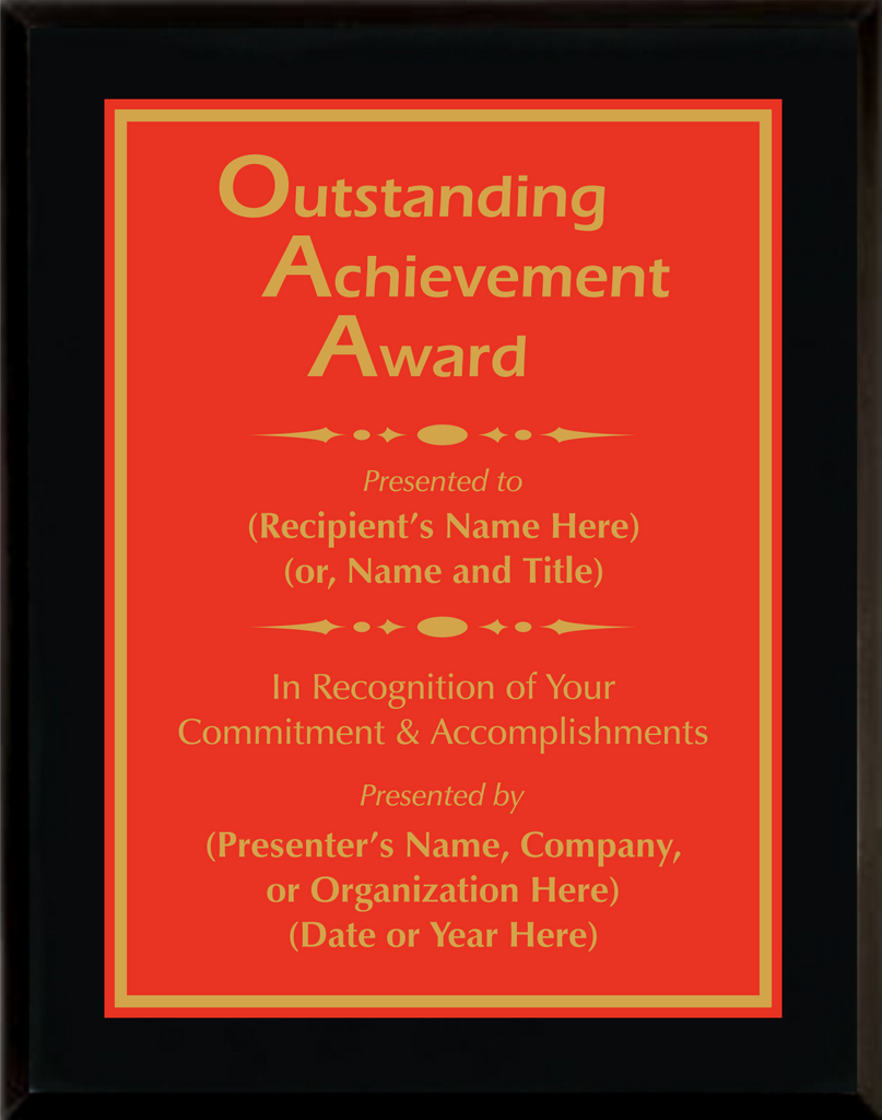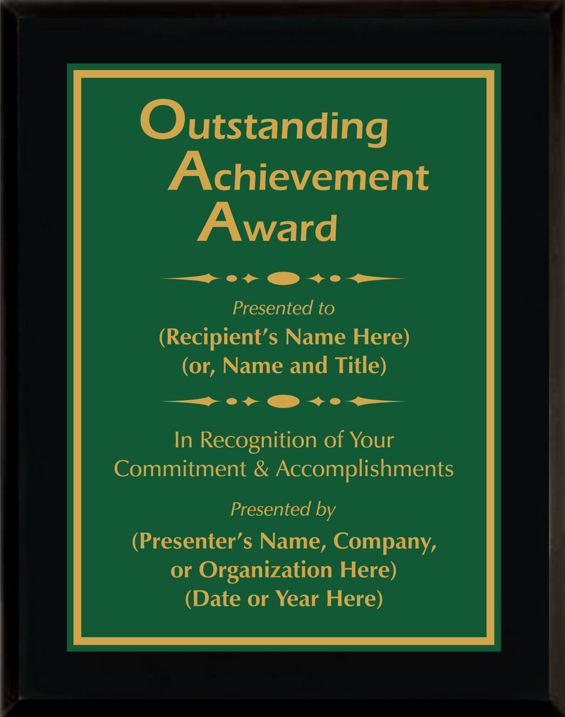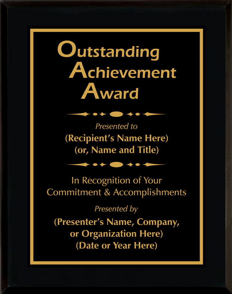 Gloss Black Wood Plaque with Standard Plate - Outstanding Achievement Award