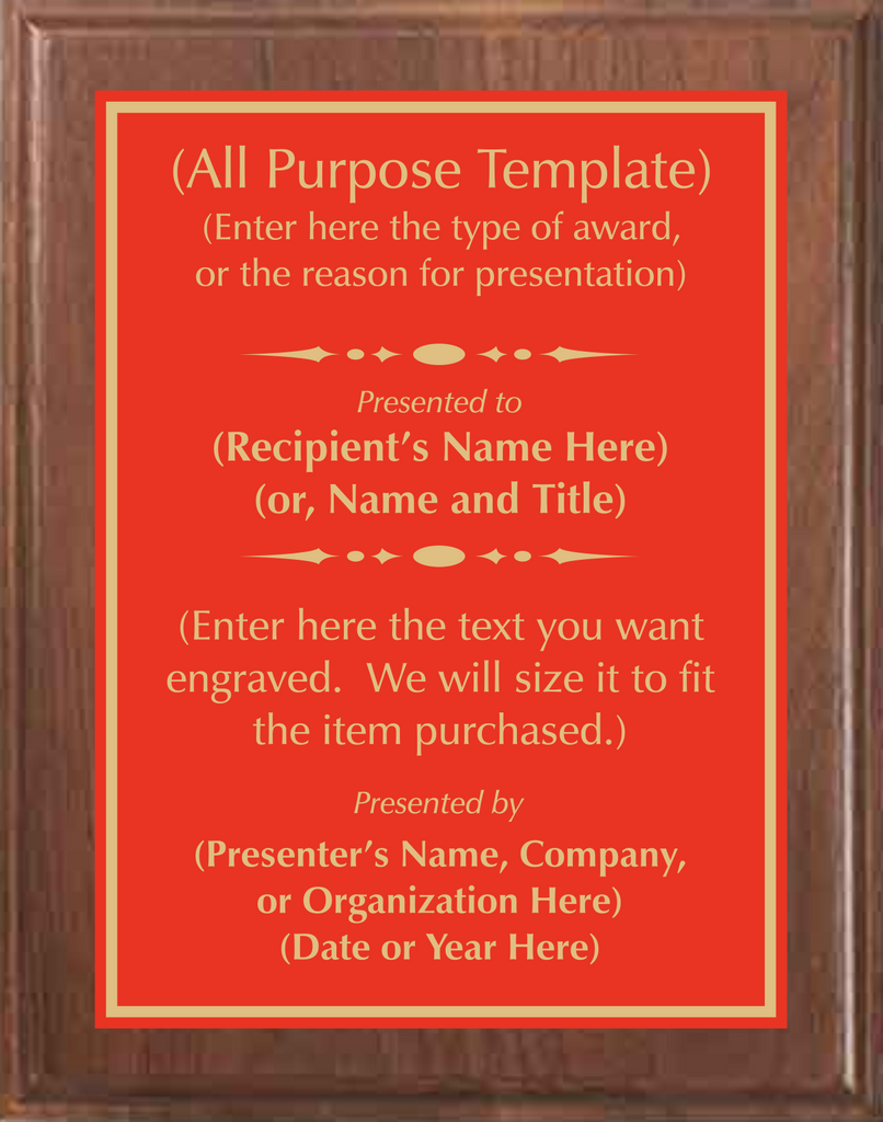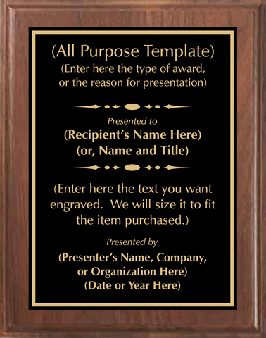 Walnut Wood Plaque with Standard Metal Plate.