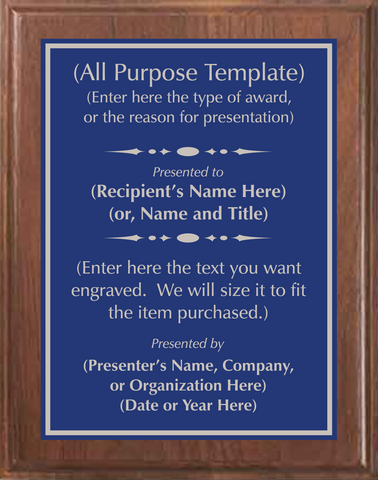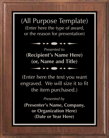Comes in 5 sizes and 8 options for plate/engraving color.  Choose your quantity and options, and enter the information you would like engraved.