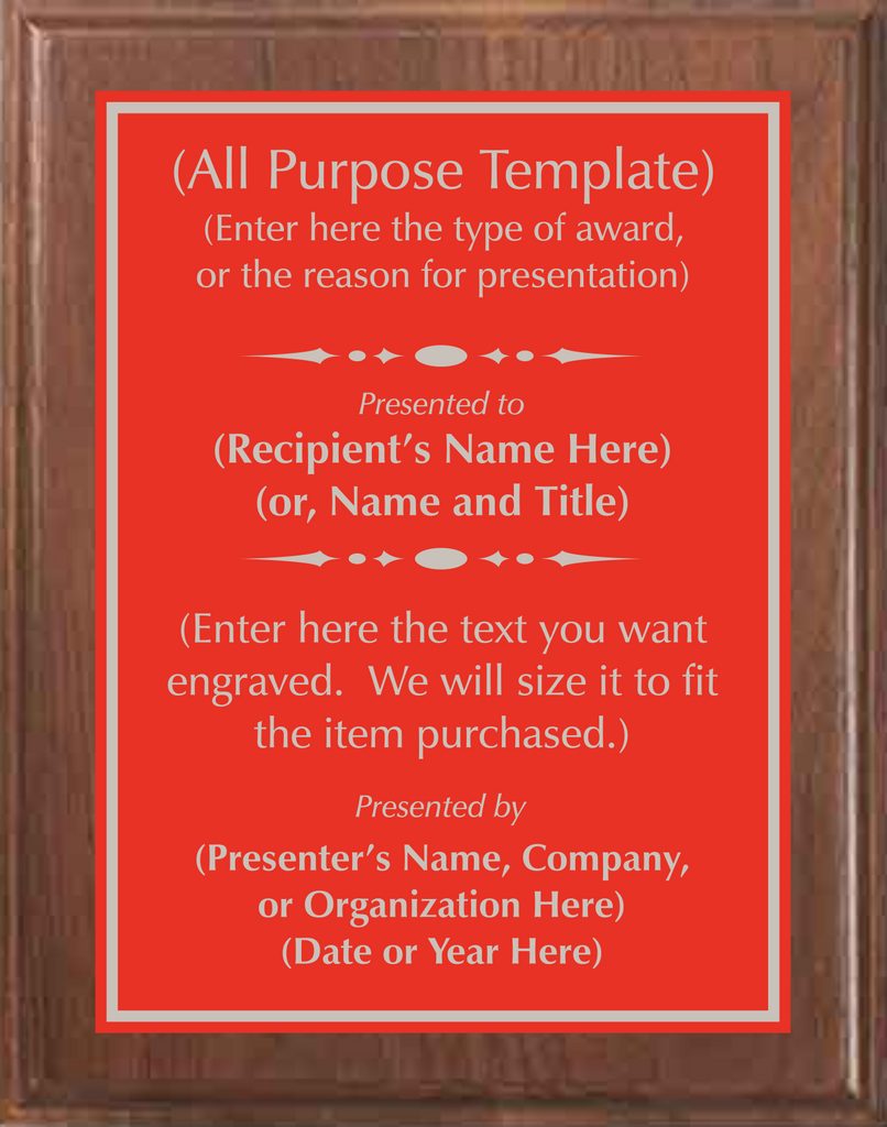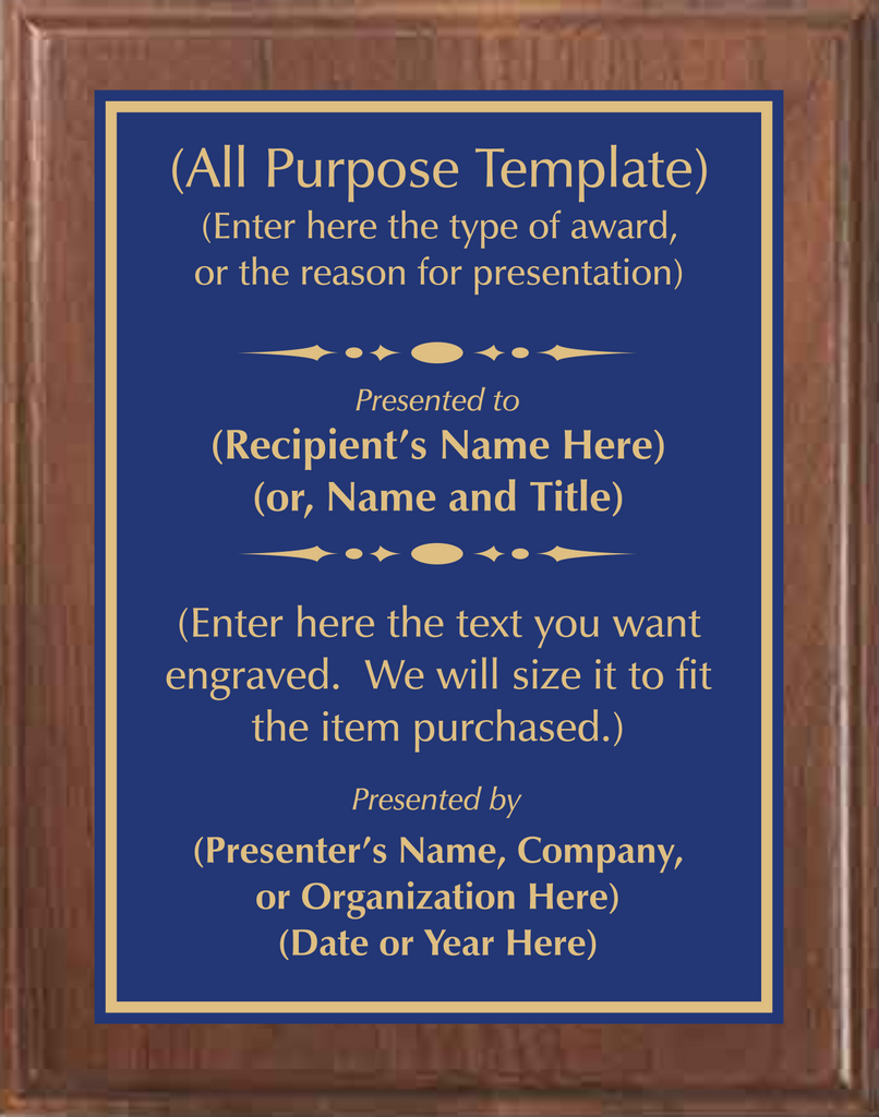Walnut Wood Plaque with Standard Plate - Design Your Own Award
