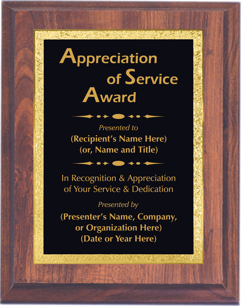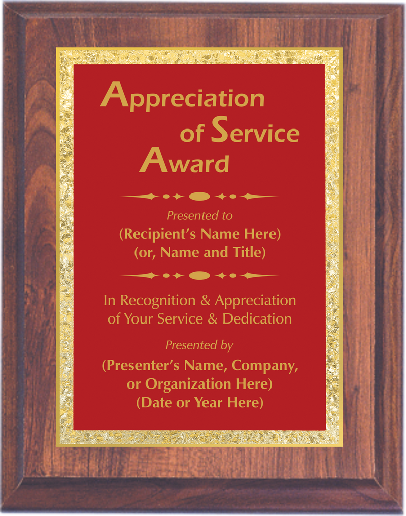 Cherry Woodgrain Plaque with Decorative Plate - General Service Award