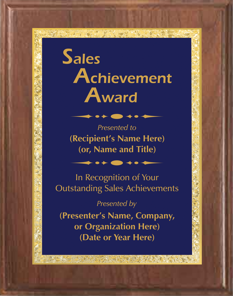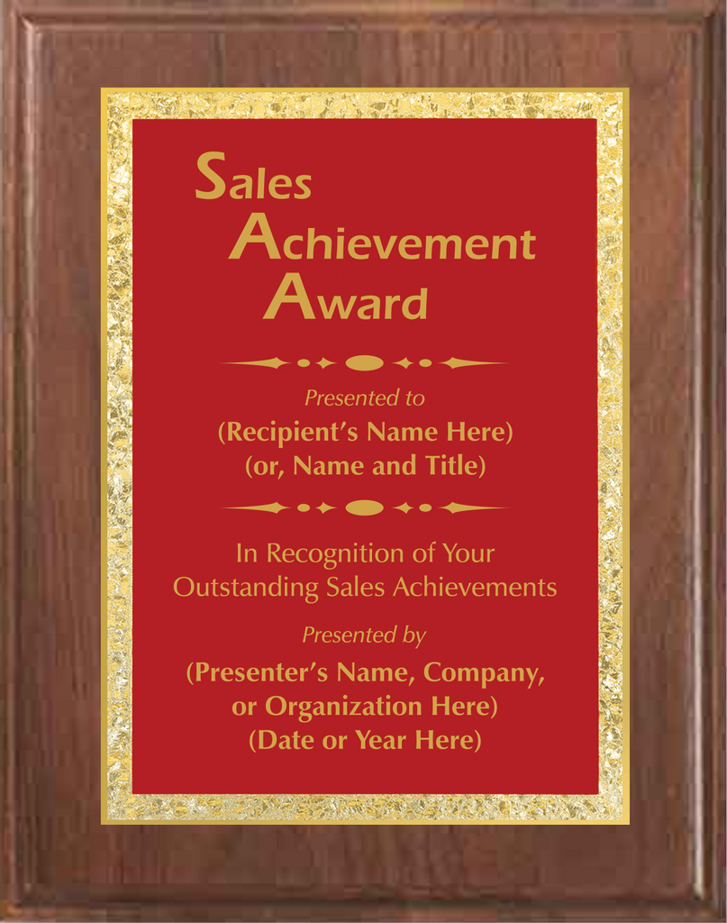 Walnut Wood Plaque with Decorative Plate - Outstanding Sales Achievement Award
