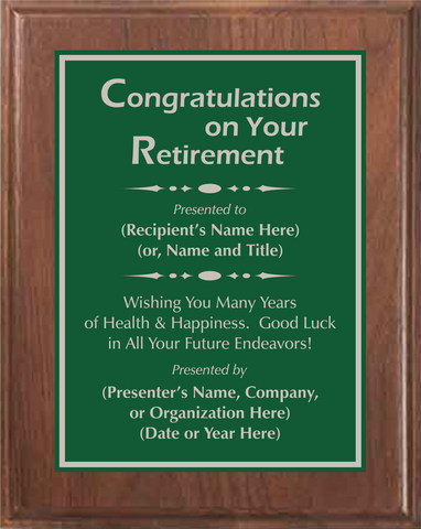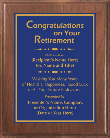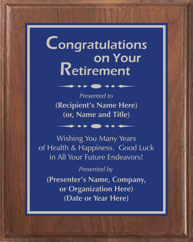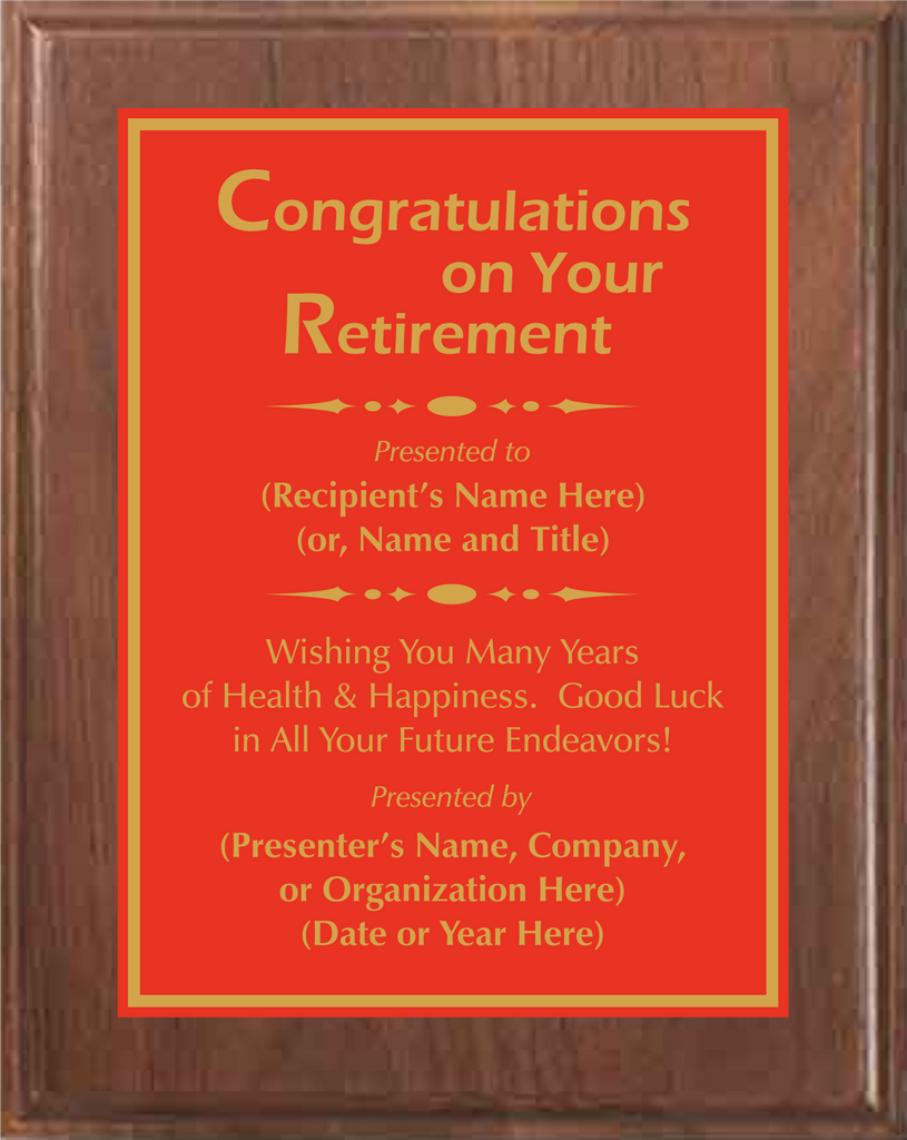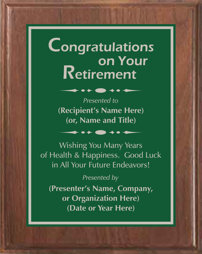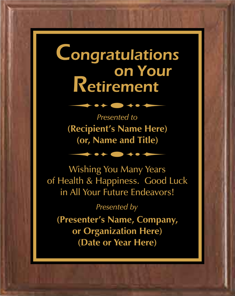 Walnut Wood Plaque with Standard Plate - Retirement Award